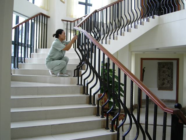 具體方針是:由上至下,由里而外,將清潔用具放在一只桶里面,讓它隨時(shí)跟隨著你,以順時(shí)針方向打掃房間。將所需的清潔用具集中存放,并保持已打掃過的房間干凈整潔。潔過的家居再染上灰塵。